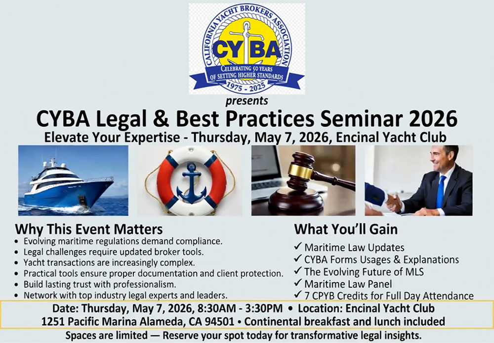 Founded in 1975, the California Yacht Brokers Association in 2025 will be celebrating 50 years of setting higher standards in our industry.